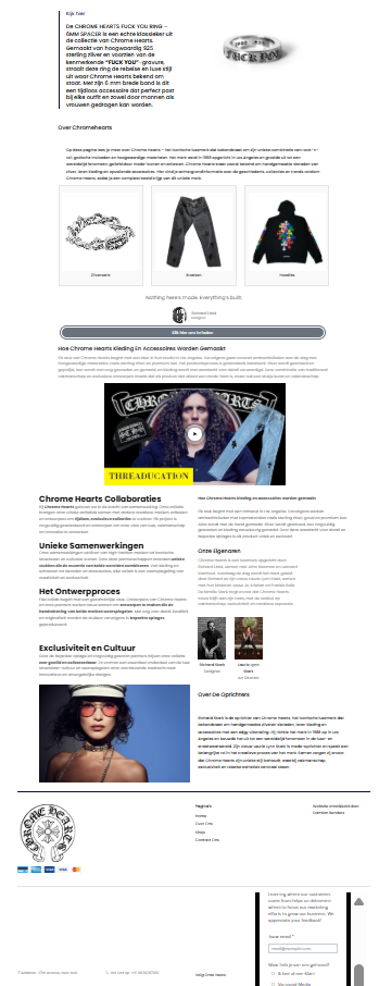 Bij deze opdracht mochten we onze eigen webshop maken over een onderwerp naar eigen keuze, net zoals bij de Feyenoord-website. Ik heb gekozen voor Chrome Hearts, omdat het een populair merk is dat ik op dat moment erg leuk vond. Vooral de sieraden spraken mij aan, waardoor ik gemotiveerd was om te werken aan een webshop over iets wat ik zelf interessant vond.